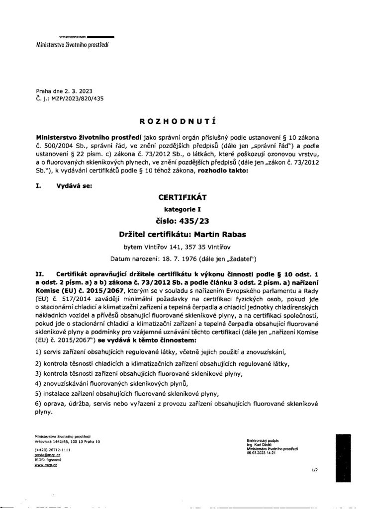 Jsme vlastníky veškerých oprávnění potřebných k provádění montáží a servisu chladících a klimatizačních zařízení, zejména pak tepelných čerpadel